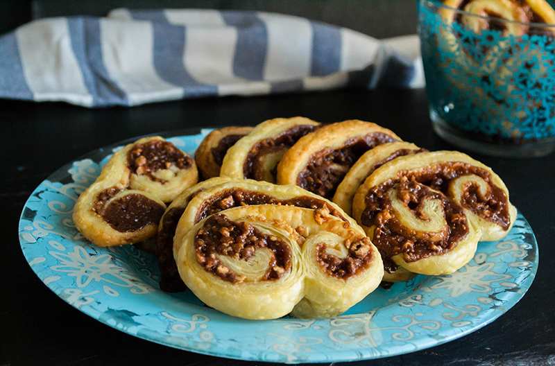 Υλικά 1 φύλλο σφολιάτας 1 αυγό Για τη γέμιση Nucrema ΙΟΝ Φουντουκόψιχα Κανέλα ή μοσχοκάρυδο, προαιρετικά Εκτέλεση Ανοίγουμε το φύλλο σφολιάτας και απλώνουμε μια στρώση Nucrema ΙΟΝ, πασπαλίζουμε με την φουντουκόψιχα και το μοσχοκάρυδο. Κλείνουμε τις δύο άκρες σε ρολό μέχρι να συναντηθούν στο κέντρο, σαν πάπυρος. Τοποθετούμε στην κατάψυξη για 30'. Προθερμαίνουμε τον φούρνο. Κατόπιν αλείφουμε με αυγό χτυπημένο και κόβουμε το ρολό με κοφτερό μαχαίρι φέτες περίπου 1,5 εκ. Αραδιάζουμε τα palmie σε αντικολλητικό χαρτί. Ψήνουμε στους 175 °C για 20' περίπου. Tips Μπορούμε χρησιμοποιήσουμε στην γέμιση ινδοκάρυδο, πεκάν ή καρύδια, επίσης να γεμίσουμε με μαρμελάδα ή κρέμα λεμονιού. Πηγή: https://www.ionsweets.gr/