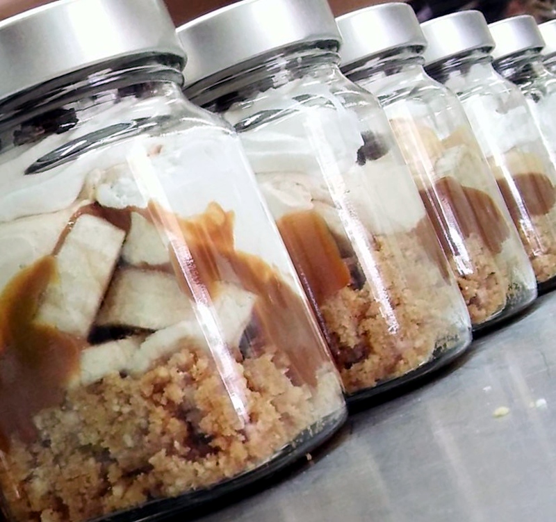 Υλικά Για την βάση 250 γρ. μπισκότα τύπου digestive 100 γρ. βούτυρο Για την κρέμα 3 ώριμες μπανάνες 1 συσκευασία ζαχαρούχο γάλα 300 ml κρέμα γάλακτος 100 γρ. σοκολάτα κουβερτούρα ΙΟΝ Εκτέλεση Λιώνουμε το βούτυρο σε ένα τηγανάκι και το αφήνουμε να κρυώσει. Θρυμματίζουμε τα μπισκότα και τα αναμιγνύουμε με το βούτυρο, προσθέτουμε στα βάζα μας και βάζουμε στο ψυγείο. Χτυπάμε την κρέμα γάλακτος με ένα μίξερ και βάζουμε στο ψυγείο. Βάζουμε το ζαχαρούχο γάλα σε ένα κατσαρολάκι και ανακατεύουμε συνεχώς μέχρι να πάρει το χρώμα της καραμέλας,αφήνουμε να κρυώσει για λίγη ώρα. Κόβουμε τις μπανάνες μας σε ροδέλες. Στήνουμε το γλυκό μας βγάζοντας από το ψυγείο το βάζο με το μπισκότο μας,προσθέτουμε τις μπανάνες,στην συνέχεια την καραμέλα μας ,την σαντιγί και τέλος τρίβουμε σοκολάτα από επάνω. Πηγή: https://www.ionsweets.gr/