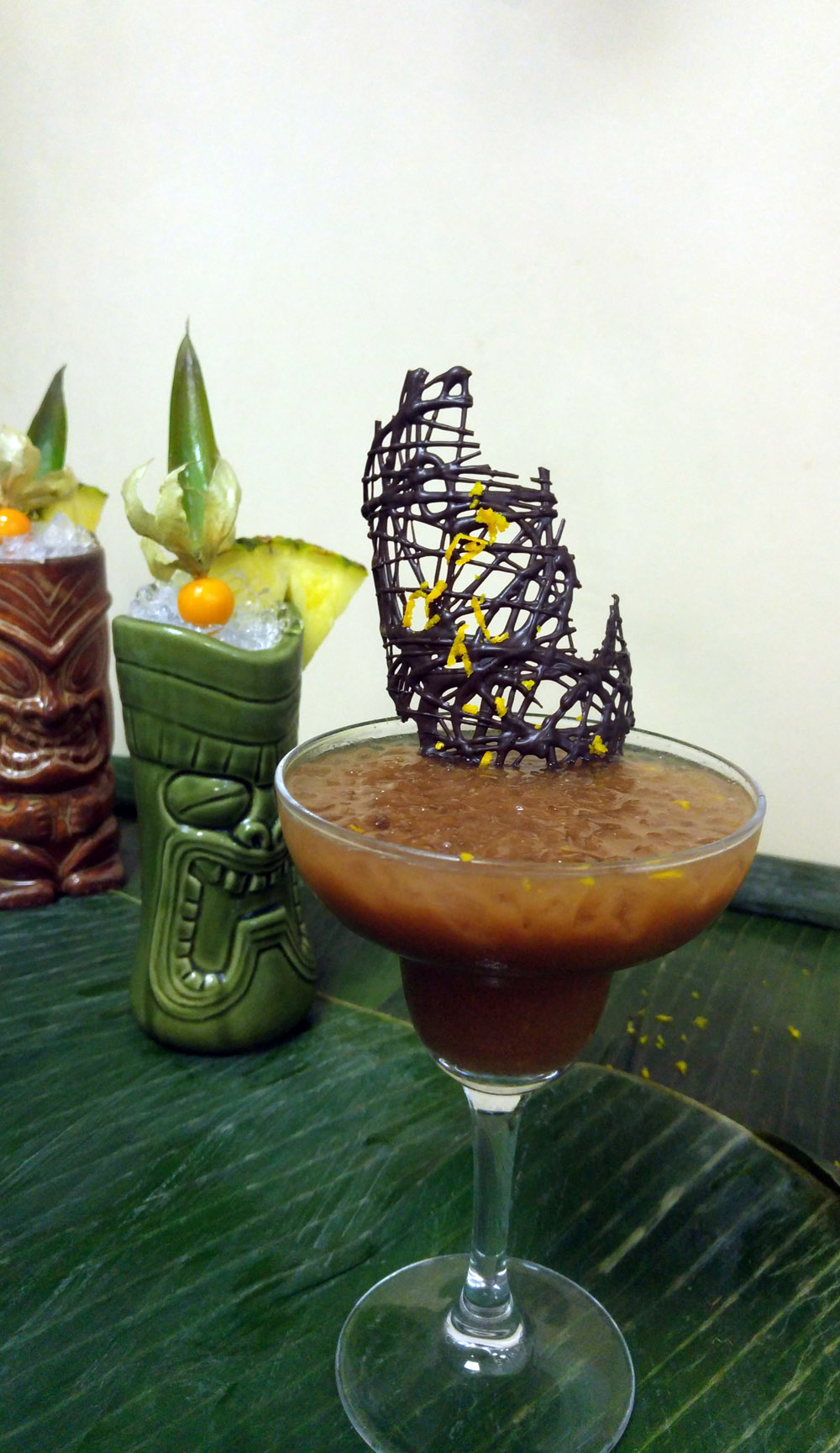 Υλικά Για το σιρόπι σοκολάτας 100 γρ. νερό 100 γρ. ζάχαρη λευκή κρυσταλλική 50 γρ. σοκολάτα κουβερτούρα ΙΟΝ Για το κοκτέιλ σοκολάτας 20 γρ. σιρόπι σοκολάτας 30 γρ. Tequila κίτρινη 10 γρ. Grand Marnier rouge Εκτέλεση Σιρόπι σοκολάτας τοποθετούμε σε κατσαρόλα το νερό και την λευκή κρυσταλλική ζάχαρη, τα ανακατεύουμε με ένα σύρμα και τα αφήνουμε να βράσουν για ένα λεπτό. Λιώνουμε την σοκολάτα κουβερτούρα σε μπεν μαρί. Μόλις το σιρόπι ζάχαρης νερού χλιαρώσει το προσθέτουμε μέσα στην λιωμένη σοκολάτα και ανακατεύουμε με σύρμα μέχρι να ομογενοποιηθούν πλήρως όλα τα υλικά. Κοκτέιλ σοκολάτας Παίρνουμε 20 γραμμάρια από το σιρόπι σοκολάτας (αυτό που περισσεύει το φυλάμε στο ψυγείο για επόμενη χρήση) και τα ανακατεύουμε μέσα σε ένα σέικερ (shaker) μαζί με τη Tequila και το Grand Marnier. Σε ποτήρι της αρεσκείας μας τοποθετούμε τριμμένο πάγο και προσθέτουμε το κοκτέιλ μαύρης σοκολάτας. Πηγή: https://www.ionsweets.gr/