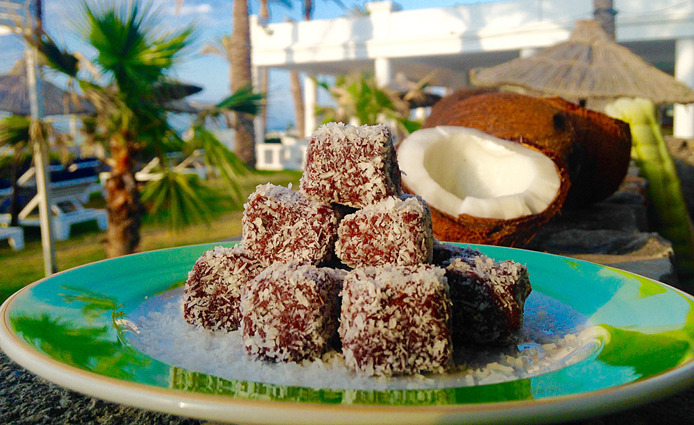 Υλικά 250 γρ. κρέμα γάλακτος 35% λιπαρά 280 γρ. σοκολάτα κουβερτούρα ΙΟΝ 47 γρ. βούτυρο 3 γρ. ρούμι Havana Club 3 ετών 40 γρ. ζάχαρη κρυσταλλική 250 γρ. τριμμένη καρύδα Εκτέλεση Βάζετε την κρέμα γάλακτος και την ζάχαρη σε κατσαρολάκι και αφήνετε να πάρει μια βράση. Προσθέτετε την σοκολάτα, το βούτυρο, το ρούμι και ανακατεύετε με σύρμα μέχρι να ομογενοποιηθεί το μείγμα. Απλώνετε σε ταψί με λαδόκολα, σκεπάζετε με διαφανής μεμβράνη επιφανειακά και αφήνετε στην κατάψυξη για 3 ώρες να παγώσει το μείγμα. Κόβετε σε μικρά κυβάκια τα σοκολατάκια και πανάρετε σε τριμμένη καρύδα. Σερβίρετε τα τρουφάκια και πασπαλίζετε με καρύδα τριμμένη το πιάτο. Πηγή: https://www.ionsweets.gr/