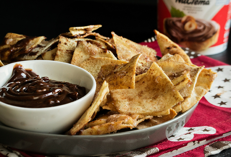Υλικά Για τα τσιπς αραβικής πίτας 4 μεγάλες πίτες 50 γρ. βούτυρο 3 κουταλιές της σούπας ζάχαρη ½ κουταλάκι του γλυκού κανέλα Για το Dip Nucrema 250 γρ. Nucrema ION 200 ml κρέμα γάλακτος Εκτέλεση Κόβουμε τις πίτες με ένα ψαλίδι ή ροδέλα σε τετράγωνα κομμάτια. Λιώνουμε το βούτυρο, προσθέτουμε τη ζάχαρη και την κανέλα. Περιχύνουμε με αυτό το μείγμα τις κομμένες πίτες και ανακατεύουμε. Απλώνουμε σε αντικολλητικό χαρτί τα τσιπς και ψήνουμε για 12 - 15' στους 165 °C. Επικάλυψη Ζεσταίνουμε την κρέμα γάλακτος να πάρει μια καλή βράση, αποσύρουμε και την ρίχνουμε στην Nucrema, ανακατεύουμε μέχρι να ομογενοποιηθούν τα δύο υλικά. Σερβίρουμε τα πίτα τσιπς με το dip Nucrema. Tips Μπορούμε να φτιάξουμε τσιπς και με αραβική πίτα ολικής άλεσης. Πηγή: https://www.ionsweets.gr