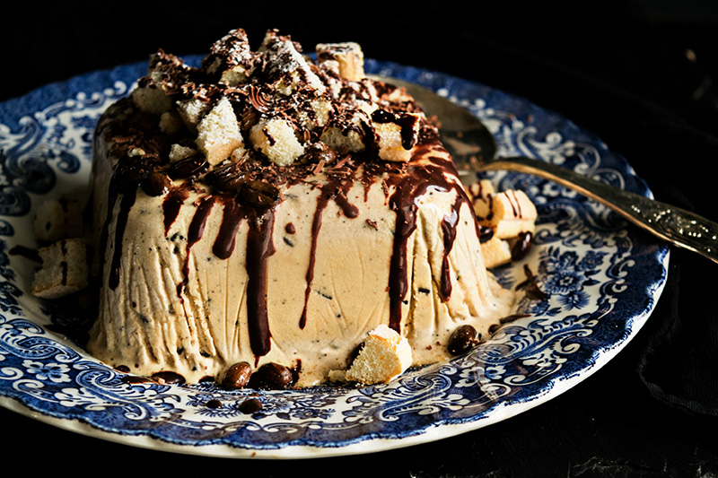 Υλικά Για το σεμιφρέντο μόκα 300 ml κρέμα γάλακτος 40 γρ. μαύρη μαλακή ζάχαρη 70 γρ. ζάχαρη άχνη 4 αυγά 1 κ.σ. νες καφέ 1 κ.γ. κακάο ΙΟΝ 100 γρ. τρούφα ΙΟΝ 50 ml λικέρ καφέ 1 κάψουλα βανιλλίνη ¼ κ.γ. αλάτι Για το γλάσο μόκα 100 γρ. σταγόνες κουβερτούρας γάλακτος ΙΟΝ 70 ml κρέμα γάλακτος 1 κ.γ. νες καφέ 1 κ.σ. λικέρ καφέ Επιπλέον για το σερβίρισμα 3-4 σαβαγιάρ Τριμμένη κουβερτούρα Ζάχαρη άχνη Εκτέλεση Σεμιφρέντο Χτυπάμε τα ασπράδια με το αλάτι να γίνουν σφικτή μαρέγκα. Χτυπάμε την κρέμα γάλακτος μέχρι να πήξει και να γίνει σαντιγί. Στον κάδο του μίξερ χτυπάμε τους κρόκους, με τις ζάχαρες, το λικέρ, τον καφέ, το κακάο και την βανιλλίνη για 5'. Σταματάμε το χτύπημα και με σπάτουλα ενσωματώνουμε το μείγμα πρώτα την μαρέγκα, κατόπιν την κρέμα γάλακτος και την τρούφα, ανακατεύουμε με αργές κινήσεις μέχρι να ομογενοποιηθούν τα μείγματα. Μεταφέρουμε το μείγμα σε μακρόστενη φόρμα, την οποία έχουμε καλύψει με μεμβράνη τροφίμων. Τοποθετούμε στην κατάψυξη την φόρμα και αφήνουμε να παγώσει το σεμιφρέντο για 6 ώρες τουλάχιστον. Γλάσο μόκα Ρίχνουμε τις σταγόνες σοκολάτας σε ένα μπολ. Βάζουμε την κρέμα γάλακτος μαζί με τον καφέ και το λικέρ να πάρουν μια γρήγορη βράση και αποσύρουμε. Περιχύνουμε τις σταγόνες και ανακατεύουμε καλά μέχρι να λιώσουν. Σερβίρουμε με θρυμματισμένα μπισκότα, ζεστό ή κρύο γλάσο μόκα, την τριμμένη κουβερτούρα και ζάχαρη άχνη. Tips Μπορούμε αντί για τρούφα να χρησιμοποιήσουμε τριμμένη κουβερτούρα. Αν δεν θέλουμε να χρησιμοποιήσουμε νες καφέ, χρησιμοποιούμε μια μικρή συμπυκνωμένη δόση εσπρέσο. Πηγή: https://www.ionsweets.gr