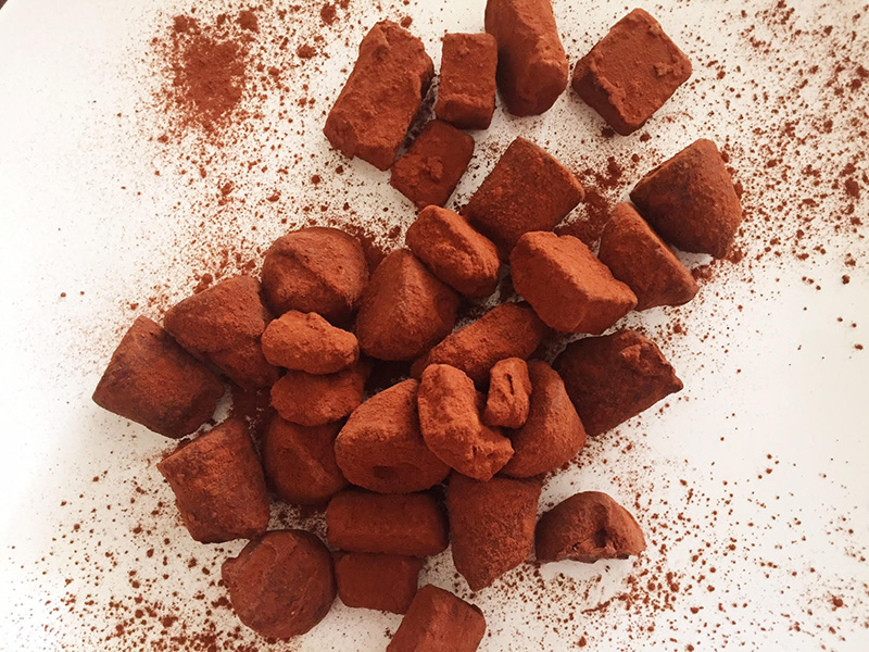 Υλικά 130 γρ. κρέμα γάλακτος 130 γρ. υγρή καραμέλα 60 γρ. βούτυρο χωρίς αλάτι 3 κ.σ. whiskey 310 γρ. σοκολάτα ΙΟΝ ψιλοκομμένη 1 κ.σ. στιγμιαίο καφέ 1 κ.σ. αλάτι για το πασπάλισμα 50 γρ. κακάο ΙΟΝ σκόνη Εκτέλεση Σε ένα μπολ βάζουμε την σοκολάτα. Σε ένα άλλο μπολ ανακατεύουμε την κρέμα την καραμέλα το whiskey το βούτυρο και ομογενοποιούμε. Βάζουμε το μπολ στο microwave και κάθε 30" ανακατεύουμε μέχρι να βράσει το μείγμα. Ρίχνουμε το μείγμα με την καραμέλα μέσα στο μπολ με τη σοκολάτα και ανακατεύουμε. Προσθέτουμε και τον καφέ και ανακατεύουμε ξανά. Δοκιμάζουμε και προσθέτουμε λίγο αλάτι. Σκεπάζουμε το μπολ με μεμβράνη και το βάζουμε στο ψυγείο για τουλάχιστον 5 ώρες ή ακόμα καλύτερα για όλο το βράδυ. Με ένα κουτάλι παίρνουμε μια ποσότητα και πλάθουμε με τα χέρια μας κορδόνια τα οποία μετά τα κόβουμε με μαχαίρι ή κάνουμε μπαλάκια μικρά ή μεγάλα ανάλογα τι μας αρέσει. Τα βουτάμε μέσα στο κακάο να πάει παντού ,και τέλος πασπαλίζουμε με λίγο αλάτι. Πηγή: https://www.ionsweets.gr