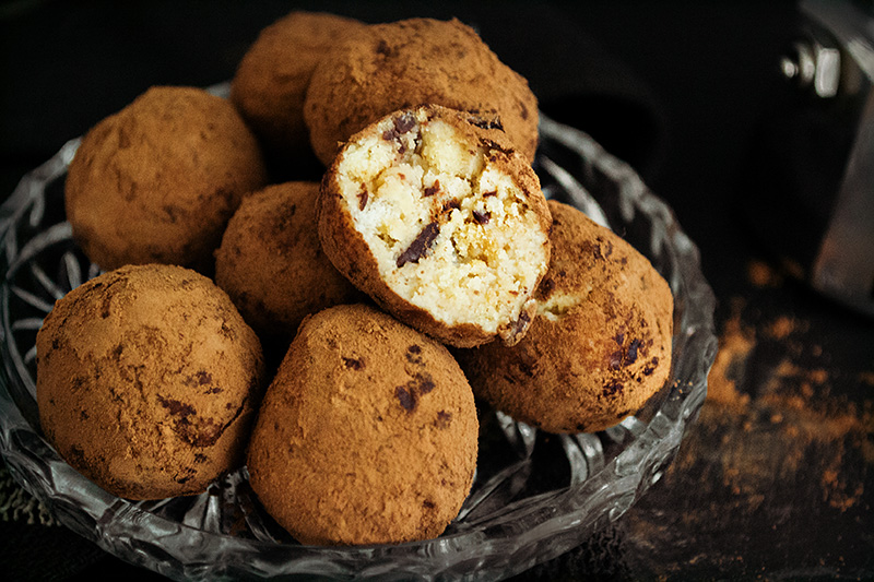 Υλικά 120 γρ. τυρί κρέμα 150 γρ. μπισκότα σαβαγιάρ 70 γρ. ζάχαρη άχνη 2 κ.σ. κρασί Marsala ή κονιάκ 20 ml κ.σ. καφέ εσπρέσο 100 γρ. κουβερτούρα ΙΟΝ Ελάχιστη βανίλια Για την επικάλυψη Κακάο ΙΟΝ Εκτέλεση Τρίβουμε τα μπισκότα στο πολυμίξερ. Ανακατεύουμε το τυρί κρέμα με την άχνη, τον καφέ, προσθέτουμε το κρασί Marsala ή κονιάκ και την βανίλια. Ανακατεύουμε καλά όλα τα υλικά και στο τέλος προσθέτουμε ψιλοκομμένη την κουβερτούρα. Αφήνουμε το μείγμα για 1 ώρα στο ψυγείο και κατόπιν πλάθουμε τρούφες. Τέλος τις πασπαλίζουμε και τις καλύπτουμε με κακάο. Tips Μπορούμε να φτιάξουμε τις τρούφες με σταγόνες κουβερτούρας. Πηγή: https://www.ionsweets.gr