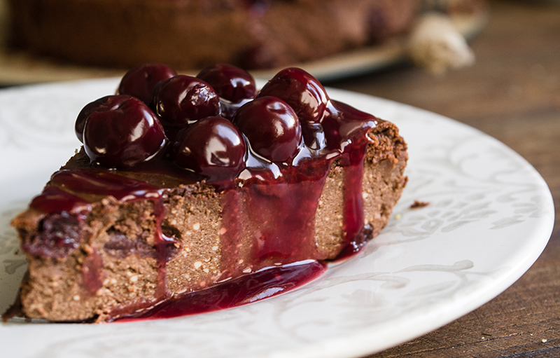Υλικά 500 γρ. ανθότυρο ή γλυκιά μυζήθρα 180 γρ. γιαούρτι στραγγιστό 125 γρ. ION Dark κλασική 55 ml. κρέμα γάλακτος 145 γρ. ζάχαρη άχνη 1 κάψουλα βανιλλίνη 3 αυγά 425 γρ. κομπόστα βύσσινο 3 κουταλιές της σούπας κόρν φλάουρ Εκτέλεση Βάζουμε την κρέμα γάλακτος σε μία μικρή κατσαρόλα να πάρει μία βράση, προσθέτουμε την ΙΟΝ DARK κλασική τεμαχισμένη και ανακατεύουμε μέχρι να λιώσει. Στον κάδο του μίξερ χτυπάμε το ανθότυρο, το γιαούρτι, τη ζάχαρη, τ´ αυγά και τη βανίλλια για 3 - 4'. Προσθέτουμε τη σοκολάτα και συνεχίζουμε το χτύπημα μέχρι να ενσωματωθεί στο υπόλοιπο μείγμα. Στραγγίζουμε τη μισή ποσότητα του βύσσινου, την προσθέτουμε στο μείγμα και ανακατεύουμε με κουτάλι. Μεταφέρουμε το κέικ τυριού σε ανοιγόμενη φόρμα-τσέρκι 24 εκατοστών. Ψήνουμε σε καλά προθερμασμένο φούρνο για 45-50' στους 175 °C και το αφήνουμε να σταθεροποιηθεί και να κρυώσει πολύ καλά. Δένουμε την υπόλοιπη κομπόστα (βύσσινα και ζουμί) με το κόρν φλάουρ, περιχύνουμε το κέικ και σερβίρουμε. Tips Μπορούμε να χρησιμοποιήσουμε και ρικότα. Μπορούμε ν´ αρωματίσουμε το γλύκισμα με λικέρ από βύσσινα. Πηγή: https://www.ionsweets.gr/