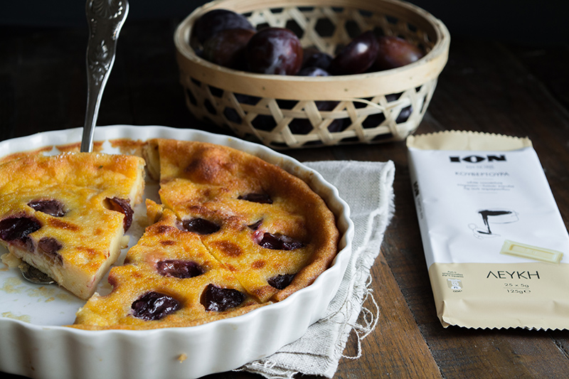 Υλικά Για το κλαφουτί 400 ml. γάλα 125 γρ. λευκή κουβερτούρα ΙΟΝ 65 γρ. βούτυρο 2 μεγάλα αυγά 80 γρ. αλεύρι 20 γρ. κόρν φλάουρ Ελάχιστο αλάτι Για τα δαμάσκηνα 300 γρ. δαμάσκηνα 40 γρ. ζάχαρη 1 κ.σ. βούτυρο 1 κ.σ. εκχύλισμα βανίλιας Εκτέλεση Κόβουμε τα δαμάσκηνα στη μέση και αφαιρούμε τα κουκούτσια τους. Μαρινάρουμε τα δαμάσκηνα με τη ζάχαρη και τη βανίλια για 30'. Βουτυρώνουμε μια ταρτιέρα 24 εκατοστών, ρίχνουμε μέσα τα δαμάσκηνα και ψήνουμε για 25-30'. Αναμειγνύουμε όλα τα υλικά του κλαφουτί και τη σοκολάτα ψιλοκομμένη, περιχύνουμε τα καραμελωμένα δαμάσκηνα. Ψήνουμε για 45' στους 175 °C. Σερβίρουμε το κλαφουτί σε θερμοκρασία δωματίου ή δροσερό και διατηρείται στο ψυγείο. Tips Μπορούμε αντί για κόρν φλάουρ να προσθέσουμε αμυγδαλόψιχα και να αρωματίσουμε με λικέρ αμαρέτο. Πηγή: https://www.ionsweets.gr/