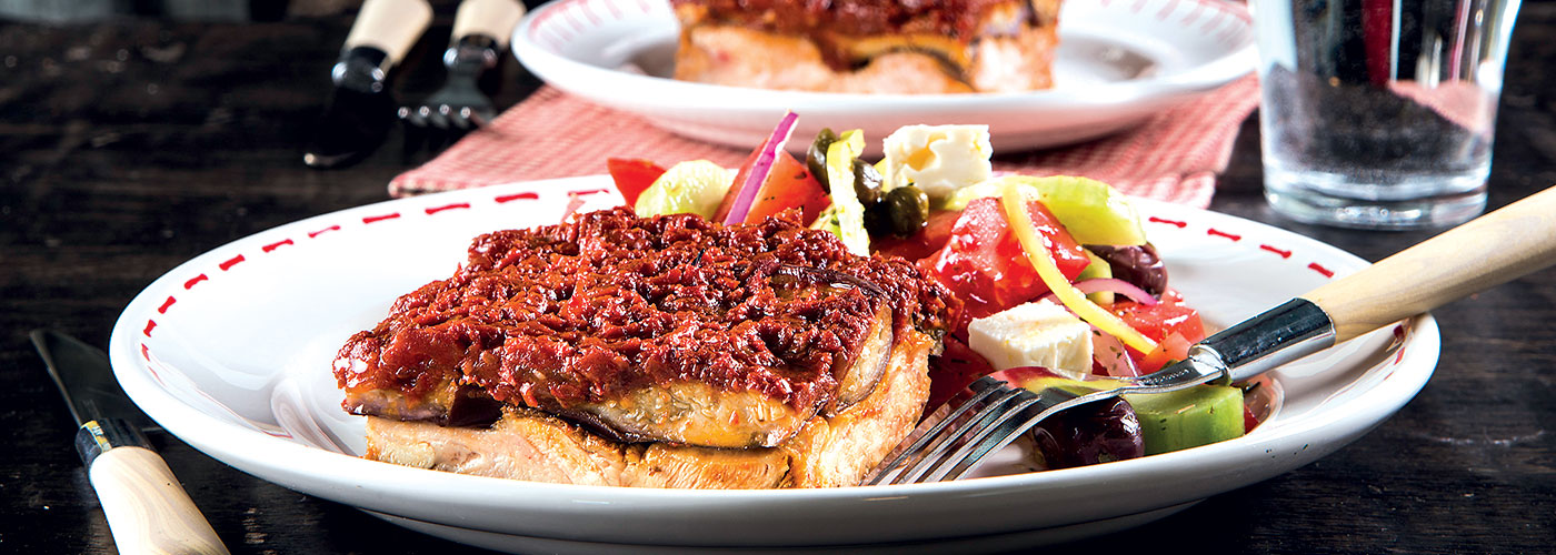 Υλικά 6 μπούτια κοτόπουλου Νιτσιάκος, ξεκοκαλισμένα 12 μελιτζάνες τσακώνικες 600 γρ. κρεμμύδια ξερά, ψιλοκομμένα 2 κιλά ντομάτες ώριμες, ξεφλουδισμένες και ξεσποριασμένες 6 σκελίδες σκόρδου 1 κλωναράκι θυμαριού 1 φύλλο δάφνης 20 φύλλα δυόσμου 300 ml ελαιόλαδο αλάτι, πιπέρι φρεσκοτριμμένο Εκτέλεση Κόβουμε τη φλούδα από τις μελιτζάνες στη μια πλευρά οριζοντίως και χαράζουμε τις διαγώνια σε διάφορα σημεία. Αλατίζουμε τις και αφήστε τις σε ένα σουρωτήρι για 50'. Στη συνέχεια ξεπλένουμε τις καλά σε τρεχούμενο νερό για 2'. Πλένουμε τις ντομάτες, τις ξεφλουδίζουμε, αφαιρούμε τους σπόρους και τρίβουμε τις στη χοντρή πλευρά του τρίφτη. Τοποθετούμε ένα τηγάνι με το ελαιόλαδο σε μέτρια φωτιά να ζεσταθεί καλά. Τηγανίζουμε τις μελιτζάνες μέχρι να πάρουν χρώμα και τις αποσύρουμε με μια τρυπητή κουτάλα σε μια πιατέλα με απορροφητικό χαρτί κουζίνας. Καρυκεύουμε με αλάτι και πιπέρι τα μπούτια κοτόπουλου και τα τοποθετούμε στη βάση ενός μεσαίου ταψιού. Στρώνουμε από πάνω ομοιόμορφα τις μελιτζάνες. Αδειάζουμε σε ένα άλλο σκεύος το μισό ελαιόλαδο από αυτό που τηγανίσαμε τις μελιτζάνες και τοποθετούμε και πάλι το τηγάνι με το υπόλοιπο σε χαμηλή φωτιά. Προσθέτουμε το κρεμμύδι ψιλοκομμένο και σοτάρουμε για 5', ανακατεύοντας με ξύλινη κουτάλα. Ρίχνουμε τις σκελίδες του σκόρδου ολόκληρες και τις ντομάτες. Αφήνουμε τη σάλτσα να βράσει για 20' και καρυκεύουμε με αλάτι και φρεσκοτριμμένο πιπέρι. Κατόπιν αποσύρουμε από τη φωτιά. Προθερμαίνουμε το φούρνο στους 150 °C στον αέρα. Ρίχνουμε στο ταψί με τις μελιτζάνες και το κοτόπουλο τα φύλλα δυόσμου και δάφνης και το θυμάρι. Καλύπτουμε τις μελιτζάνες με τη σάλτσα ντομάτας. Βάζουμε το σκεύος στη μεσαία σχάρα του φούρνου και ψήστε το ιμάμ για περίπου 2 ώρες στους 150 °C στον αέρα, μέχρι να καραμελώσει η σάλτσα ντομάτας. Αποσύρουμε από το φούρνο και αφήνουμε το ιμάμ να κρυώσει για 30'. Πηγή: http://www.nitsiakos.gr