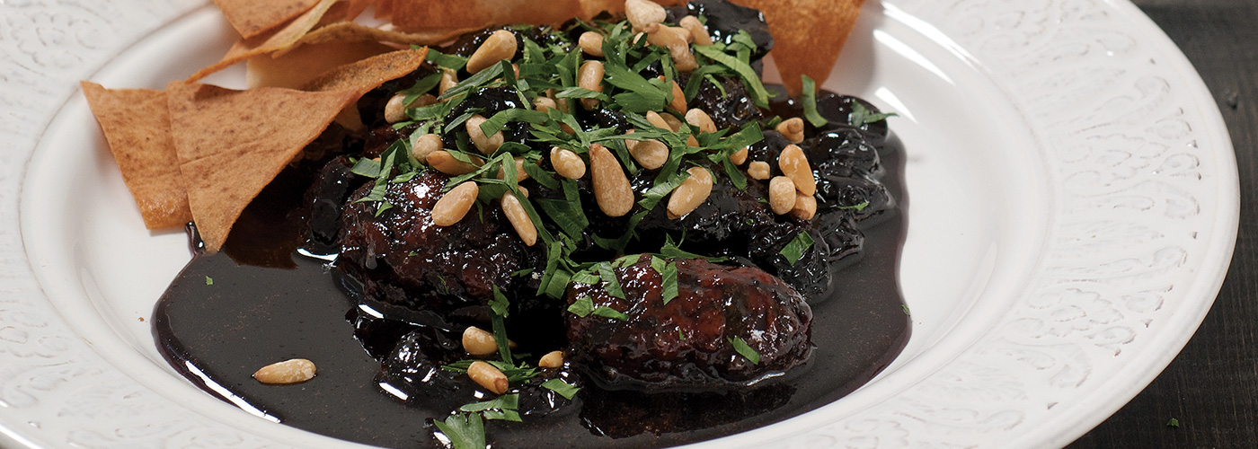 Υλικά 500 γρ. κιμά κοτόπουλο Νιτσιάκος 500 γρ. βύσσινα χωρίς κουκούτσι 1 κρεμμύδι μέτριο πολύ ψιλοκομμένο 1/4 κ.γ. από πιπέρι, κάρδαμο, κανέλα, γαρίφαλο και πιπέρι αλέπο (το μείγμα λέγεται και μπαχαράτ) 125 γρ. κουκουνάρια καβουρδισμένα 2 κ.σ. χυμό λεμόνι, 2 κ.σ. ζάχαρη 2 κ.σ. ελαιόλαδο (αν χρειαστεί) 1/4 ματσάκι μαϊντανό (μόνο τα φυλλαράκια) αλάτι, πιπέρι φρεσκοτριμμένο αραβικές πίτες κουκουνάρια και μαϊντανό (κατά βούληση) Εκτέλεση Σε μικρή κατσαρόλα καλύπτουμε τα βύσσινα με νερό που μόλις να τα σκεπάζει. Προσθέτουμε τη ζάχαρη και το λεμόνι και σιγοβράζουμε μέχρι να αρχίσουν να σιροπιάζουν. Πλάθουμε τα κεμπάπ με τον κιμά κοτόπουλου, τα μπαχαρικά, το κρεμμύδι, το αλάτι και το πιπέρι, στο μέγεθος ενός καρυδιού. Τα περνάμε από λεπτές μεταλλικές σούβλες και τα ψήνουμε στα κάρβουνα σε πάρα πολύ ψηλή φωτιά για 2 - 3' από κάθε μεριά. Εναλλακτικά τα τηγανίζουμε σε πολύ δυνατή φωτιά σε αντικολλητικό τηγάνι με το ελαιόλαδο για 1 - 2'. Προσθέτουμε τα κεμπάπ στην κατσαρόλα με τα βύσσινα και σιγοβράζουμε για 10', μέχρι τα κεμπάπ πάρουν το χρώμα του βύσσινου και η σάλτσα να δέσει. Σερβίρουμε σε πιατέλα με κομμένες τις αραβικές πίτες. Πασπαλίζουμε τα κεμπάπ με κουκουνάρι και μαϊντανό. Πηγή: http://www.nitsiakos.gr