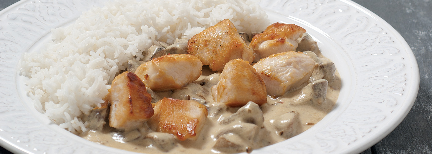 Υλικά 600 γρ. στήθος κοτόπουλου κομμένο σε κομμάτια των 20γρ. 350 γρ. μανιτάρια 200 γρ. μασκαρπόνε 100 γρ. κρεμμύδι ψιλοκομμένο 1 σκελίδα σκόρδο λιωμένη 15 γρ. μουστάρδα Dijon 70 ml ελαιόλαδο 5 - 6 φυλλαράκια φασκόμηλο ψιλοκομμένο αλάτι, πιπέρι φρεσκοτριμμένο Εκτέλεση Σε αντικολλητικό τηγάνι και σε πολύ δυνατή φωτιά σοτάρουμε το κοτόπουλο με τη μισή ποσότητα ελαιόλαδου για 3 - 4', μέχρι να πάρει χρώμα. Σε άλλο τηγάνι, πάλι σε πολύ δυνατή φωτιά, σοτάρουμε τα μανιτάρια με το υπόλοιπο ελαιόλαδο για 2 - 3'. Προσθέτουμε το κρεμμύδι και το σκόρδο και σοτάρουμε για ένα ακόμα 1'. Σβήνουμε τα μανιτάρια με το κρασί και βράζουμε για περίπου 2'. Προσθέτουμε τη μουστάρδα και το μασκαρπόνε στο τηγάνι και αμέσως μετά τα κομμάτια κοτόπουλου και βράζουμε με τη σάλτσα μας για περίπου 2' ή μέχρι να πήξει η σάλτσα. Σερβίρουμε με ρύζι ατμού. Πηγή: http://www.nitsiakos.gr