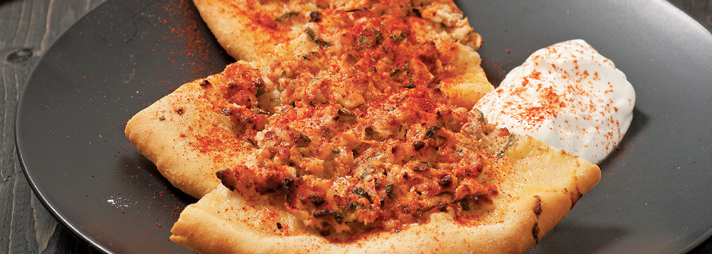 Υλικά Για τη ζύμη 8 γρ. μαγιά ξερή 1 πρέζα ζάχαρη 1 1/2 φλ. χλιαρό νερό 3 1/2 φλ. αλεύρι 1 πρέζα αλάτι 50 ml ελαιόλαδο Για τον κιμά 1000 γρ. κιμά κοτόπουλο Νιτσιάκος 200 γρ. κρεμμύδι ψιλοκομμένο 3 σκελίδες σκόρδο λιωμένο 50 ml ελαιόλαδο 2 ντομάτες ζεματισμένες και ψιλοκομμένες 1/2 κ.γ. γλυκιά πάπρικα 1/2 κ.γ. πιπέρι αλέπο 1 καυτερή πιπεριά κέρατο ψιλοκομμένη 1/2 ματσάκι μαϊντανό ψιλοκομμένο αλάτι, πιπέρι φρεσκοτριμμένο Εκτέλεση Ζύμη Τοποθετούμε το αλεύρι σε μια λεκάνη. Προσθέτουμε το αλάτι, τη ζάχαρη και τη μαγιά και ανακατεύουμε. Ρίχνουμε τα παραπάνω υλικά σε μίξερ, προσθέτουμε το χλιαρό νερό και το λάδι και ζυμώνουμε (με το γάντζο) μέχρι η ζύμη να μην κολλάει στα τοιχώματα του μίξερ και να γίνει ελαστική, περίπου 8-10'. Αν χρειαστεί, θα προσθέσουμε λίγο αλεύρι. Σκεπάζουμε τη ζύμη με πετσέτα και την αφήνουμε σε θερμοκρασία δωματίου μέχρι να φουσκώσει (σχεδόν να διπλασιαστεί). Τη μοιράζουμε σε 7-8 μπάλες και την ξαναπλάθουμε. Τη σκεπάζουμε και την αφήνουμε για ακόμα 30' να «ξεκουραστεί». Κιμάς Σοτάρουμε το κρεμμύδι με το ελαιόλαδο για 3', προσθέτουμε το σκόρδο και σοτάρουμε για 1' ακόμα. Σε μπολ ανακατεύουμε και πλάθουμε πολύ καλά τον κιμά με τα παραπάνω υλικά, τα μπαχαρικά, τα μυρωδικά το αλάτι και το πιπέρι. Το λαχματζούν το κάνουμε όσο καυτερό μας αρέσει Για το ψήσιμο: Ανοίγουμε τη ζύμη όπως αυτή της ιταλικής πίτσας, δηλαδή λεπτή. Την απλώνουμε σε καυτό ταψί και με το χέρι μας ρίχνουμε πάνω στη ζύμη μία λεπτή στρώση κιμά. Ψήνουμε σε προθερμασμένο φούρνο στους 200 °C για 8 - 10'. Σερβίρουμε με μια φέτα λεμόνι. Πηγή: http://www.nitsiakos.gr