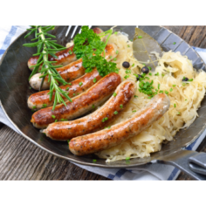 Υλικά Για το λάχανο 1 λίτρο νερό 45 γρ. Αλάτι 65 γρ. Ζάχαρη 1 φύλλο δάφνης 500 γρ. λάχανο ψιλοκομμένο Για τα λουκάνικα: 2 Λουκάνικα χωριάτικα Υφαντής ½ κρεμμύδι κόκκινο 1 Πράσινη πιπεριά ½ κουτάκι μπύρα Ζωμός μόσχου (Knor) Για το σερβίρισμα 2 κ.σ. Μουστάρδα 100 ml Ελαιόλαδο Εκτέλεση Βράζουμε τα υλικά της μαρινάδας (νερό, αλάτι, ζάχαρη, δάφνη) και προσθέτουμε το ψιλοκομμένο λάχανο. Αφήνουμε το λάχανο πάνω στο «μάτι» της κουζίνας για 1' και στην συνέχεια σβήνουμε το μάτι. Αφήνουμε το λάχανο να κρυώσει μέσα στην μαρινάδα. Κόβουμε τα λουκάνικα σε λεπτές ροδέλες, κόβουμε το κρεμμύδι σε φέτες και τις πιπεριές σε κύβους. Σ’ ένα τηγάνι σωτάρουμε τα λουκάνικα και αφού πάρουν χρώμα προσθέτουμε το κρεμμύδι, και την πιπεριά. Σωτάρουμε για λίγο και σβήνουμε με την μπύρα. Προσθέτουμε τον ζωμό μόσχου και αφήνουμε να για λίγο να βράσει. Προσθέτουμε στο τηγάνι το λάχανο με την βοήθεια μιας αράχνης και ανακατεύουμε ελαφρώς. Σερβίρουμε σε βαθύ πιάτο, και περιχύνουμε με μουστάρδα αραιωμένη με λίγη μαρινάδα από το λάχανο και ελαιόλαδο. Πηγή: https://www.ifantis.gr