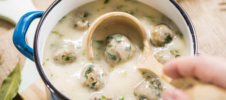 Υλικά Για τα γιουβαρλάκια 300 γρ. κιμά μοσχαρίσιο 50 γρ. αλεσμένο ψωμί (μόνο ψίχα) 1 αυγό ½ κ.σ. μαραθόσπορο χοντροαλεσμένο 4 κ.σ. ελαιόλαδο 1 κρεμμύδι(200γρ.) τριμμένο στον τρίφτη 300 γρ. σπανάκι χοντροκομμένο χωρίς κοτσάνια Αλάτι – πιπέρι Λίγο αλεύρι για το πανάρισμα Για το ζωμό 200 ml κρέμα γάλακτος Adoro per pasta 1 κούπα λευκό κρασί 1 1/2 κούπα ζωμό ή νερό 2 κ.σ. χυμό λεμόνι 2 κ.σ. ελαιόλαδο 1 σκελίδα σκόρδο ψιλοκομμένη 1 φύλλο δάφνης Αλάτι – πιπέρι 2 κ.σ. δυόσμο φρέσκο ψιλοκομμένο Εκτέλεση Γιουβαρλάκια Βάζουμε όλα τα υλικά σε ένα μπολ ανακατεύουμε καλά και αφήνουμε το μείγμα στο ψυγείο για 30', να σφίξει. Πλάθουμε το κιμά με βρεγμένα χέρια σε μέγεθος καρυδιού και τα πανάρουμε με αλεύρι. Ζωμός Βάζουμε σε ένα βαθύ τηγάνι το κρασί, το ζωμό, το λεμόνι, το σκόρδο, το ελαιόλαδο, τη δάφνη, αλάτι, πιπέρι και τα αφήνουμε να πάρουν βράση. Ρίχνουμε τα γιουβαρλάκια μέσα στο τηγάνι και τα αφήνουμε να μαγειρευτούν για 15 - 20'. Στη συνέχεια προσθέτουμε την κρέμα γάλακτος, το δυόσμο, αναταράσσουμε την κατσαρόλα, για να ανακατευτούν τα υλικά και κατεβάζουμε από τη φωτιά. Πηγή: https://www.adorocreams.gr/