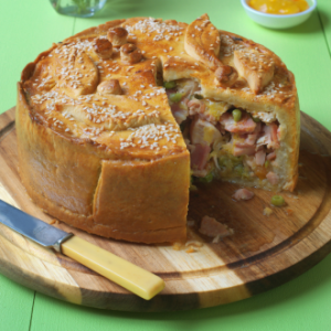 Υλικά 8 φέτες Ζαμπόν Fouantre (όχι πολύ λεπτές) 8 φύλλα κρούστας 400 γρ. φέτα 200 γρ. φουντούκι Ελαιόλαδο Ρίγανη 150 γρ. μουστάρδα 300 γρ. πετιμέζι 30 γρ. ξύδι Ξύσμα από ένα πορτοκάλι Εκτέλεση Θρυμματίζουμε σε ένα μπολ την φέτα. Χοντροκόβουμε το φουντούκι σε ένα blender. Παίρνουμε το φύλλο και το κόβουμε στο μήκος του Fouantre. Ανοίγουμε το κάθε φύλλο ξεχωριστά και το αλείφουμε πολύ καλά με λάδι. Διασπείρουμε τα κομμάτια της φέτας πάνω στο φύλλο και στην συνέχεια προσθέτουμε το χοντροκομμένο φουντούκι. Προσθέτουμε λίγη ρίγανη και ακολουθούμε την ίδια διαδικασία με τα υπόλοιπα φύλλα κρούστας. Τυλίγουμε χαλαρά το φύλλο με την γέμιση. Με την βοήθεια ενός πινέλου μαρινάρουμε τις φέτες του ζαμπόν με την μουστάρδα (μόνο την μία πλευρά). Τοποθετούμε πάνω στην μαριναρισμένη πλευρά του ζαμπόν το μικρό ρολό με το φύλλο κρούστας και τυλίγουμε προσεκτικά το ζαμπόν αφήνοντας έξω την πλευρά με το δέρμα. Παρασκευάζουμε μια σάλτσα ανακατεύοντας το πετιμέζι με την υπόλοιπη μουστάρδα, το ξύδι και το ξύσμα πορτοκαλιού. Αφού ροδίσουν τα ρολά του ζαμπόν, περιχύνουμε την σάλτσα πάνω από τα ρολά δυναμώνουμε τον φούρνο στους 220 °C και τα αφήνουμε στον φούρνο να καραμελώσουν και να δέσει η σάλτσα, περίπου 4-5'. Αφαιρούμε τις οδοντογλυφίδες και σερβίρουμε. Πηγή: https://www.ifantis.gr