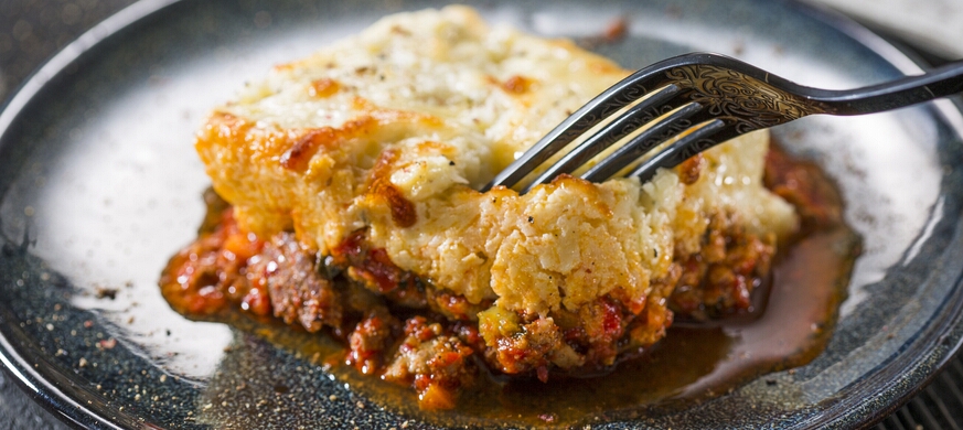 Υλικά Για τον κιμά 6 κ.σ. ελαιόλαδο 1000 γρ. μοσχαρίσιο κιμά 1 κρεμμύδι ψιλοκομμένο 1 μεγάλο καρότο ψιλοκομμένο 1 κλωνάρι σέλερΙ ψιλοκομμένο ½ κούπα κρασί λευκό 400 γρ. ντομάτα κον κασέ 1 κ.σ. πελτέ ντομάτας 2 κούπες ζωμό κότας 3 κ.σ. θυμάρι φρέσκο ψιλοκομμένο 2 κ.γ. πάπρικα γλυκιά Αλάτι – πιπέρι Για τον πουρέ 200 ml κρέμα γάλακτος Adoro per pasta 1 κουνουπίδι (μόνο τα μπουκέτα) 2 σκελίδες σκόρδο 3 κ.σ. βούτυρο 150 γρ. γραβιέρα γλυκιά τριμμένη 1 αβγό Αλάτι – πιπέρι Μαϊντανό ψιλοκομμένο για το σερβίρισμα Εκτέλεση Κιμάς Ζεσταίνουμε το ελαιόλαδο σε μια χαμηλή κατσαρόλα, προσθέτουμε τον κιμά και σοτάρουμε πολύ καλά, να πάρει χρώμα και να διαχωριστεί πολύ καλά. Ρίχνουμε το κρεμμύδι , το καρότο, το σέλερι και συνεχίζουμε το σοτάρισμα για λίγα λεπτά ακόμα μέχρι να μαραθούν τα λαχανικά. Σβήνουμε με το κρασί, αφήνουμε να εξατμιστεί για 1', προσθέτουμε τα υπόλοιπα υλικά, ανακατεύουμε και τα αφήνουμε να μαγειρευτούν για 15 - 20' περίπου σε μέτρια θερμοκρασία, μέχρι να δέσει η σάλτσα. Πουρές Βράζουμε το κουνουπίδι σε μπόλικο αλατισμένο νερό για 15' περίπου, μέχρι να μαλακώσει αρκετά. Λιώνουμε το βούτυρο με το σκόρδο σε ένα τηγάνι και τα κρατάμε στην άκρη. Σουρώνουμε το κουνουπίδι, το βάζουμε στο μπλέντερ, προσθέτουμε το λιωμένο βούτυρο, την κρέμα, το μισό τυρί, το αβγό, πιπέρι και πολτοποιούμε. Συναρμολόγηση Αδειάζουμε τον κιμά σε ένα πιρέξ με διαστάσεις 23x32 εκτοστά και τον απλώνουμε ομοιόμορφα. Στρώνουμε από πάνω τον πουρέ καλύπτοντας όλη την επιφάνεια, πασπαλίζουμε με το υπόλοιπο τυρί και ψήνουμε σε προθερμασμένο φούρνο στους 180 °C, για 20 - 25' περίπου και στη συνέχεια το αφήνουμε 5' στο γκριλ για να πάρει χρώμα. Αφήνουμε την πίτα να κάτσει 10' και την σερβίρουμε πασπαλισμένη με ψιλοκομμένο μαϊντανό. Πηγή: https://www.adorocreams.gr/