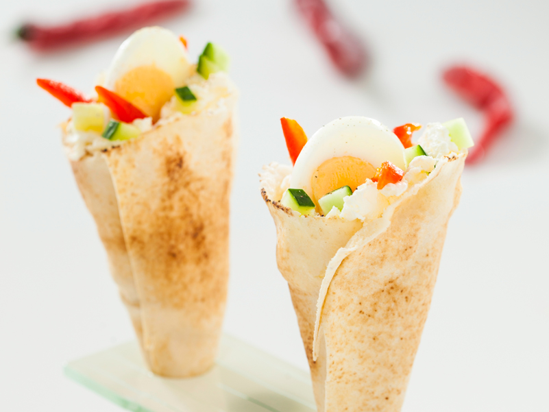 Υλικά 2 πίτες Αραβικού Άρτου Aυγό βρασμένο Αγγούρι Κόκκινες πιπεριές Μαλακό τυρί Εκτέλεση Ψήνουμε κόκκινες πιπεριές για 10' στον φούρνο, μέχρι να μαλακώσουν. Αλείφουμε τις πίτες Aραβικού Άρτου ELVIART με μαλακό τυρί και προσθέτουμε φέτες αγγουριού, αυγό & κόκκινες πιπεριές ψητές. Τυλίγουμε και κόβουμε σε μικρά ρολά. Πηγή: https://www.elviart.gr/