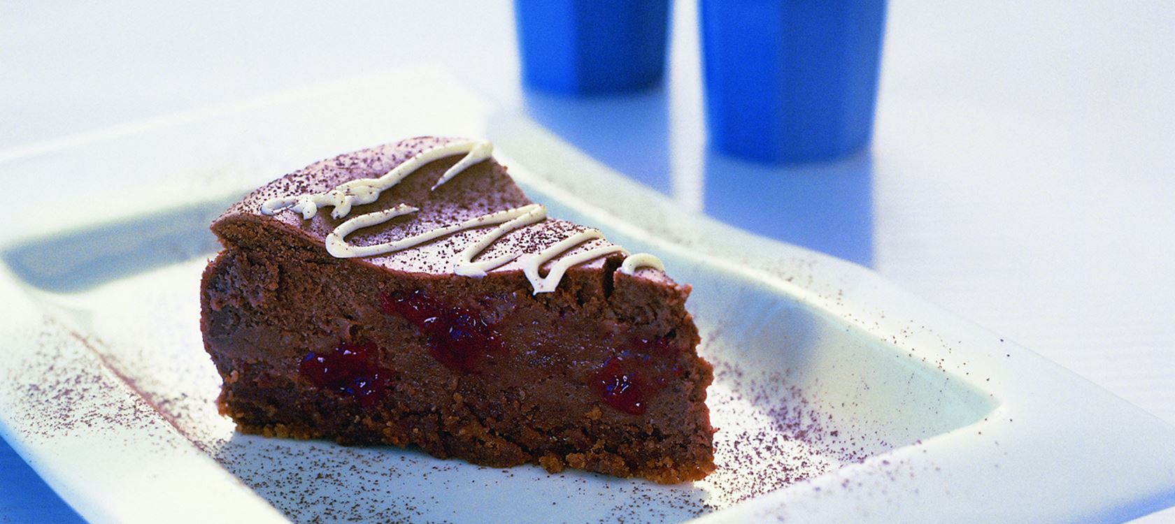 Υλικά 50 γρ. βούτυρο Lurpak ανάλατο 100 γρ. καλά τριμμένα μπισκότα αμαρέτι 500 γρ. τυρί κρέμα 100 γρ. ζάχαρη άχνη 140 ml κρέμα γάλακτος 3 μεσαία αυγά 50 γρ. αλεύρι 100 γρ. λιωμένη σοκολάτα 2 κ.σ. σος βατόμουρο Εκτέλεση Λιώνετε το βούτυρο Lurpak σε ένα τηγάνι και προσθέτετε τα μπισκότα αμαρέτι ανακατεύοντας. Πιέζετε το μείγμα στον πάτο μιας βουτυρωμένης, ανοικτής βάσης για κέικ μεγέθους 20 εκατοστών και το αφήνετε στην άκρη. Στη συνέχεια, λιώνετε τη σοκολάτα σε μπεν μαρί. Σε ένα άλλο σκεύος, χτυπάτε το τυρί κρέμα και τη ζάχαρη μέχρι να λιώσουν και κατόπιν προσθέτετε την κρέμα γάλακτος, τα αυγά, το αλεύρι και τη λιωμένη σοκολάτα, ανακατεύοντας καλά. Προσθέτετε την σος βατόμουρου ανακατεύοντας και αδειάστε το μείγμα στην βάση για κέικ. Ψήνετε σε προθερμασμένο φούρνο στους 150 °C για 45'. Σβήνετε το φούρνο και αφήνετε το cheesecake να κρυώσει μέσα στο φούρνο για μια ώρα περίπου. Το βάζετε στο ψυγείο μέχρι το σερβίρισμα. Σερβίρετε το cheesecake πασπαλισμένο με γλάσο ζάχαρης ή κακάο. Κοσκινισμένο γλάσο Ζάχαρης ή Κακάο για το γαρνίρισμα Πηγή: https://www.arlafoods.gr