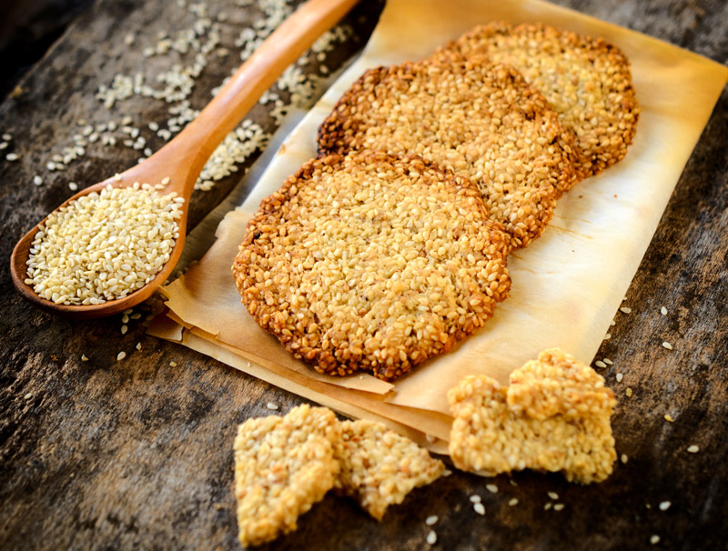 Υλικά 1 ¾ φλιτζάνια ωμά αμύγδαλα 1 κ.γ. ψημένοι σπόροι μάραθου ½ κ.γ. μαγειρική σόδα ½ κ.γ. χοντρό αλάτι ½ φλιτζάνι μέλι 1/3 φλιτζάνι ταχίνι 1 κ.γ. απόσταγμα βανίλιας ½ φλιτζάνι σισάμι Εκτέλεση Προθερμαίνουμε τον φούρνο στους 180 °C. Χτυπάμε τα αμύγδαλα σε ένα μπλέντερ μέχρι να θρυμματιστούν αλλά όχι να γίνουν και σκόνη και τα ανακατεύουμε. Σε ένα μικρό μπολ ρίχνουμε τα τριμμένα αμύγδαλα, τους ψημένους σπόρους μάραθου, το αλάτι και τη μαγειρική σόδα. Σε ένα μετρίου μεγέθους μπολ ανακατεύουμε το μέλι, το ταχίνι και τη βανίλια μέχρι να γίνουν μείγμα. Προσθέτουμε το ξηρό μείγμα που ετοιμάσαμε πριν από λίγο και ανακατεύουμε καλά. Το μείγμα που θα προκύψει πρέπει να είναι αρκετά σφιχτό έτσι ώστε να μπορούμε να φτιάξουμε μικρές μπάλες με τα χέρια. Αν είναι πολύ υγρό, προσθέτουμε λίγα θρυμματισμένα αμύγδαλα ακόμα. Φτιάχνουμε μπαλίτσες στο μέγεθος κερασιού και τις ρολάρουμε στο σησάμι. Τις βάζουμε σε ένα ταψί πάνω σε χαρτί ψησίματος και φροντίζουμε ώστε να έχουν απόσταση περίπου 3 εκατοστά μεταξύ τους. Ψήνουμε για περίπου 10'. Αν θέλουμε τα μπισκότα μας να γίνουν πολύ τραγανά, τα γυρίζουμε και τα ψήνουμε για μερικά λεπτά ακόμα. Πηγή: https://www.ionsweets.gr/