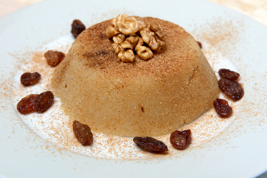Υλικά 500 ml νερό 5 κ.σ. ελαιόλαδο 30 γρ. λευκά αμύγδαλα 330 γρ. σιμιγδάλι ολικής αλέσεως 160 γρ. ζάχαρη 3 κ.σ. σταφίδες ξανθές Τριμμένη κανέλα Καρύδια Εκτέλεση Βράζουμε νερό σε ένα κατσαρολάκι. Μόλις βράσει, το βγάζουμε από το μάτι και το αφήνουμε σε μια σβηστή εστία. Ρίχνουμε το λάδι σε ένα μεγάλο αντικολλητικό τηγάνι και το αφήνουμε σε μέτρια φωτιά. Όταν ζεσταθεί, ρίχνουμε τα αμύγδαλα. Ανακατεύουμε και τηγανίζουμε μέχρι να πάρουν μια χρυσαφί απόχρωση. Αφαιρούμε τα αμύγδαλα με μια κουτάλα σουρωτή και τα αφήνουμε να στραγγίξουν σε χαρτί κουζίνας. Βάζουμε το σιμιγδάλι στο ίδιο λάδι. Χαμηλώνουμε τη φωτιά μας. Ανακατεύουμε το σιμιγδάλι για 8 - 10' μέχρι να χρυσίσει, δεν αφήνουμε να γίνει καφέ χρώμα. Προσθέτουμε τη ζάχαρη και ανακατεύουμε. Πολύ αργά ρίχνουμε το βρασμένο νερό στο τηγάνι ανακατεύοντας συνέχεια, θα χρειαστούμε 2' για να το κάνουμε. Όταν θα έχουμε προσθέσει όλο το νερό χαμηλώνουμε τη φωτιά. Ανακατεύουμε και μαγειρεύουμε το χαλβά για ακόμα 5'. Προσθέτουμε τις σταφίδες και τα αμύγδαλα. Ανακατεύουμε και μαγειρεύουμε για ακόμα 5'. Αφαιρούμε το χαλβά από το τηγάνι και τον μεταφέρουμε σε ένα μπολ ή μια φόρμα. Αρτύζουμε με τριμμένη κανέλα και γαρνίρουμε με καρύδια. Σερβίρουμε ζεστό ή σε θερμοκρασία δωματίου. Πηγή: https://www.ionsweets.gr/