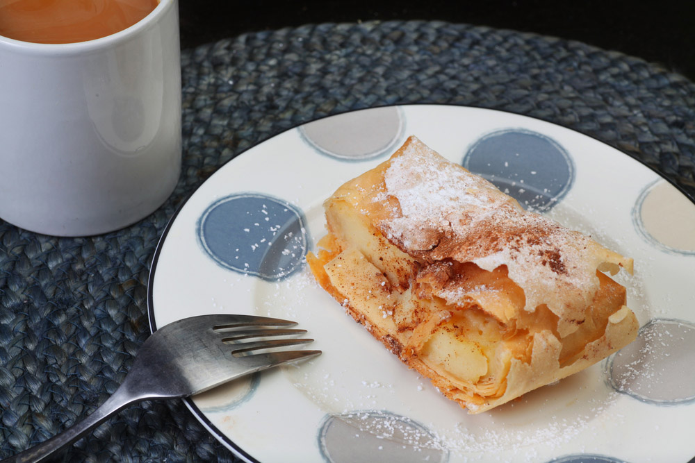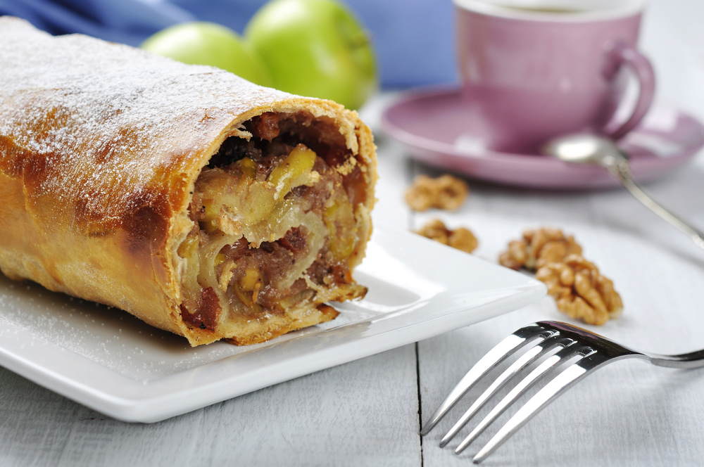 Υλικά Για τα στρούντελ 2 κ.σ. μαύρο ρούμι 3 κ.σ. σταφίδες ¼ κ.γ. αλεσμένη κανέλα 1/3 του φλιτζανιού συν 1 κ.σ. ζάχαρη ½ φλιτζάνι βούτυρο ανάλατο λιωμένο 1 ½ φλιτζάνια φρέσκα ψίχουλα ψωμιού ½ φλιτζάνι καρύδια χοντροκομμένα 900 γρ. μήλα σε μικρά κομματάκια Για την ζύμη του στρούντελ 1 1/3 φλιτζάνια αλεύκαστο αλεύρι 1/8 κ.γ. λάτι 105 ml νερό 30 ml φυτικό λάδι ½ κ.γ. ξίδι μηλίτη Εκτέλεση Στρούντελ μήλου Ανακατεύουμε το ρούμι και τις σταφίδες σε ένα μπολ. Ανακατεύουμε την κανέλα και τη ζάχαρη σε ένα άλλο μπολ. Ζεσταίνουμε 3 κουταλιές της σούπας από το βούτυρο σε ένα μεγάλο τηγάνι σε μέτρια προς δυνατή φωτιά. Προσθέτουμε τα ψίχουλα ψωμιού και μαγειρεύουμε ανακατεύοντας μέχρι να ροδίσουν και να ψηθούν. Θα χρειαστούμε 3' περίπου, μετά αφήνουμε να κρυώσει. Προθερμαίνουμε τον φούρνο στους 200 °C. Βάζουμε χαρτί ψησίματος σε ένα ρηχό ταψί. Απλώνουμε με τα δάχτυλα 3 κουταλιές της σούπας βούτυρο που μας έχει απομείνει πάνω στη ζύμη και αρτύζουμε με τα ψημένα ψίχουλα. Απλώνουμε τα καρύδια 8 εκατοστά από την κοντή άκρη της ζύμης σε μια λωρίδα 15 εκατοστών. Ανακατεύουμε τα μήλα, τις σταφίδες, το ρούμι, και την κανέλα με την ζάχαρη. Απλώνουμε με το κουτάλι το μείγμα πάνω από τη λωρίδα με τα καρύδια. Διπλώνουμε την κοντή άκρη της ζύμης και σιγά σιγά τυλίγουμε μέχρι το τέλος τη ζύμη μέχρι να γίνει ένα μακρόστενο ρολό. Διπλώνουμε το ρολό σε σχήμα πέταλου για να χωρέσει στο ταψί μας. Διπλώνουμε τις άκρες του ρολού βάζοντας τη ζύμη που περισσεύει από κάτω. Βουτυρώνουμε την επιφάνεια με το υπόλοιπο βούτυρο. Ψήνουμε για 30' μέχρι να ροδίσει. Αφήνουμε να κρυώσει τουλάχιστον 30' πριν το κόψουμε. Κόβουμε σε κομμάτια με ένα πριονωτό μαχαίρι. Ζύμη Ανακατεύουμε το αλεύρι με το αλάτι με το μίξερ. Ανακατεύουμε το νερό, το ξίδι και το λάδι σε μια μεζούρα. Προσθέτουμε τα παραπάνω στο μείγμα με το αλεύρι με το μίξερ να λειτουργεί σε χαμηλή ταχύτητα. Σε λίγο θα έχουμε μια μαλακή ζύμη. Πρέπει να προσέξουμε να μην είναι πολύ ξερή. Αν χρειαστεί προσθέτουμε λίγο νερό. Βγάζουμε τη ζύμη από το μίξερ και τη ζυμώνουμε με τα χέρια σε μια στεγνή επιφάνεια. Που και που χτυπάμε τη ζύμη με δύναμη πάνω στην επιφάνεια που την δουλεύουμε. Κάνουμε τη ζύμη σαν μια μπάλα και τη βάζουμε σε ένα πιάτο λαδώνοντας λίγο την κορυφή της. Καλύπτουμε με μεμβράνη σφικτά και την αφήνουμε για 90' να γίνει. Καλύπτουμε ένα τραπέζι κουζίνας με ένα τραπεζομάντηλο στο οποίο ρίχνουμε κατά τόπους λίγο αλεύρι και το απλώνουμε στην επιφάνειά του. Βάζουμε την μπάλα της ζύμης στο κέντρο και την απλώνουμε όσο μπορούμε. Βάζουμε τα χέρια μας κάτω απ' τη ζύμη με τις παλάμες να κοιτάνε προς τα πάνω και απλώστε τη ζύμη όσο μπορείτε. Υπολογίζουμε περίπου 60 εκατοστά πλάτος και 90 εκατοστά μήκος. Θα είναι πολύ λεπτή! Μην φοβηθείτε αν σας ανοίξουν κάποιες τρύπες καθώς την ανοίγετε, με το τύλιγμα θα καλυφθούν. Για ντεκόρ μπορείτε να προσθέσετε άχνη ζάχαρη. Πηγή: https://www.ionsweets.gr/
