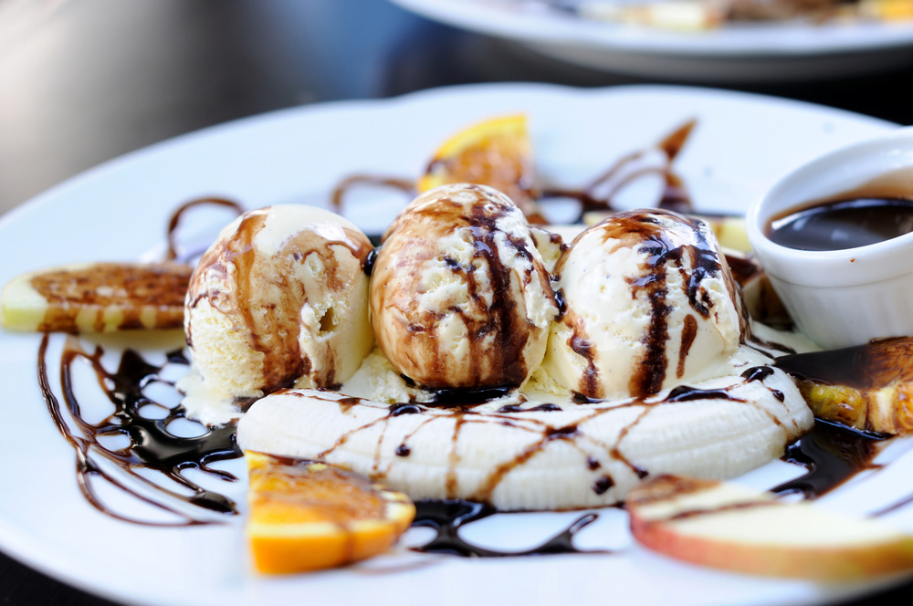 Συστατικά 1 καθαρισμένη μπανάνα κομμένη κατά μήκος στη μέση 2 ή 3 μπάλες παγωτό βανίλια 25 γραμμάρια κουβερτούρα ΙΟΝ 1 μπισκότο digestive τριμμένο 2 κουταλιές της σούπας γάλα 1 κουταλάκι του γλυκού κακάο ΙΟΝ 2 φλιτζάνια φράουλες ψιλοκομμένες Εκτέλεση Βάζουμε την μπανάνα σε ένα οβάλ σκεύος και στη μέση τις μπάλες με το παγωτό. Διακοσμούμε το πιάτο μας με τις φράουλες, προαιρετικό. Σε ένα κατσαρολάκι λιώνουμε τη σοκολάτα σε μέτρια φωτιά και μετά προσθέτουμε το γάλα. Ανακατεύουμε καλά ρίχνοντας και το τριμμένο μπισκότο. Περιχύνουμε τη σοκολάτα στο πιάτο μας έτσι ώστε να πάει σε όλα τα συστατικά μας. Αρτύζουμε με κακάο το παγωτό και την μπανάνα. Πηγή: https://www.ionsweets.gr/