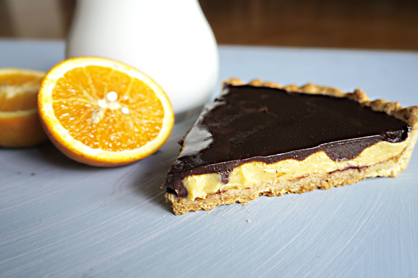 Υλικά Για τη ζύμη 180 γρ. αλεύρι για όλες τις χρήσεις 80 γρ. βούτυρο 80 γρ. ζάχαρη 1 κ.γ. baking powder 1 αυγό Για την κρέμα πορτοκάλι 120 ml χυμό πορτοκάλι ξύσμα απο ένα πορτοκάλι 3 αυγά 120 γρ. ζάχαρη 200 γρ. βούτυρο Για την γκανάζ σοκολάτας 120 ml κρέμα γάλακτος 120 γρ. ΙΟΝ κουβερτούρα κλασσική Εκτέλεση Ζύμη Σε ένα μπολ κοσκινίστε το αλεύρι, προσθέστε τη ζάχαρη, το βούτυρο, το baking powder και το αυγό. Ανακατέψτε το μείγμα για 2' και έπειτα ανοίξτε τη ζύμη αφού τοποθετήσετε πάνω & κάτω λαδόκολλα. Το φύλλο σας να είναι στο τέλος περίπου 4 χιλιοστά. Απλώστε το φύλλο σε φόρμα τάρτας διαμέτρου 26 εκατοστών, την οποία πρώτα έχετε βουτυρώσει και ψήνετε σε προθερμασμένο φούρνο στους 170 °C για 15'. Κρέμα πορτοκάλι Σε ενα μπεν μαρί προσθέστε το χυμό και το ξύσμα από τα πορτοκάλια, τα αυγά και τη ζάχαρη. Ανακατέψτε εντατικά έως ότου δέσει το μείγμα και αποσύρετε από τη φωτιά. Συμπληρώστε το βούτυρο, ανακατέψτε απαλά και γεμίστε την τάρτα με την κρέμα. Γκανάζ σοκολάτας Σε ένα μπεν μαρί προσθέστε την κουβερτούρα και την κρέμα γάλακτος. Ανακατέψτε απαλά έως ότου ομογενοποιηθούν τα υλικά. Περιχύστε με τη γκανάζ την κρέμα πορτοκάλι η οποία πρώτα πρέπει να έχει έρθει σε θερμοκρασία δωματίου και βάζετε την τάρτα στο ψυγείο για μια ώρα. Πηγή: https://www.ionsweets.gr/