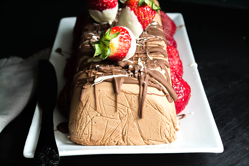 Υλικά 250 γρ. κουβερτούρα ΙΟΝ 450 ml κρέμα γάλακτος 100 γρ. ζάχαρη 50 ml νερό 1 κ.σ. άχνη ζάχαρη 40 ml λικέρ φράουλα ή κονιάκ 3 κρόκους 3 φύλλα ζελατίνης 1 λοβό βανίλιας 5-6 φράουλες 100 γρ. λευκή κουβερτούρα ΙΟΝ 50 γρ. σταγόνες κουβερτούρας ΙΟΝ Εκτέλεση Χτυπάμε τα 400 ml κρέμα γάλακτος μαζί με τους σπόρους της βανίλιας στο μίξερ μέχρι να γίνει σφιχτή σαντιγί και την αφήνουμε στο ψυγείο. Σε μπεν μαρί λιώνουμε την σοκολάτα. Ετοιμάζουμε ένα σιρόπι με την ζάχαρη και το νερό, ταυτόχρονα βάζουμε τα φύλλα ζελατίνης να μουσκέψουν σε παγωμένο νερό. Βάζουμε τα 50 ml κρέμα γάλακτος να πάρουν μια βράση και προσθέτουμε τα φύλλα ζελατίνης, ανακατεύουμε μέχρι να διαλυθούν. Στο μίξερ σε δυνατή ταχύτητα χτυπάμε τους κρόκους με 1 κουταλιά της σούπας άχνη ζάχαρη, προσθέτουμε σε ροή το σιρόπι ζάχαρης, μόλις το μείγμα αφρατέψει και διπλασιαστεί σταματάμε το χτύπημα. Προσθέτουμε το λικέρ και ενσωματώνουμε την λιωμένη κουβερτούρα και την σαντιγί ανακατεύοντας απαλά με σπάτουλα. Μεταφέρουμε σε μακρόστενη φόρμα του κέικ, την οποία έχουμε καλύψει με μεμβράνη τροφίμων. Αφήνουμε 5 ώρες στην κατάψυξη. Λίγο πριν σερβίρουμε ετοιμάζουμε τις φράουλες για την διακόσμηση Λιώνουμε την λευκή κουβερτούρα σε μπεν μαρί και βουτάμε τις φράουλες μέχρι την μέση, ακουμπάμε σε αντικολλητικό χαρτί και αφήνουμε 30' να σταθεροποιηθεί η κουβερτούρα. Λιώνουμε τις σταγόνες κουβερτούρας σε σε μπεν μαρί και αφήνουμε 3-4 λεπτά στην άκρη πριν τις χρησιμοποιήσουμε. Κατόπιν ξεφορμάρουμε και περιχύνουμε την μαρκίζ με την σοκολάτα και ακουμπάμε τις φράουλες στην επιφάνεια. Κόβουμε σε φέτες και σερβίρουμε. Tips Στην μαρκίζ μπορούμε να προσθέσουμε ψιλοκομμένους ξηρούς καρπούς, ταιριάζουν και οι καραμελωμένοι, επίσης ψιλοκομμένα γλυκά του κουταλιού και μπισκότα. Αφήνουμε την μαρκίζ 5' εκτός ψυγείου πριν σερβίρουμε. Πηγή: https://www.ionsweets.gr/