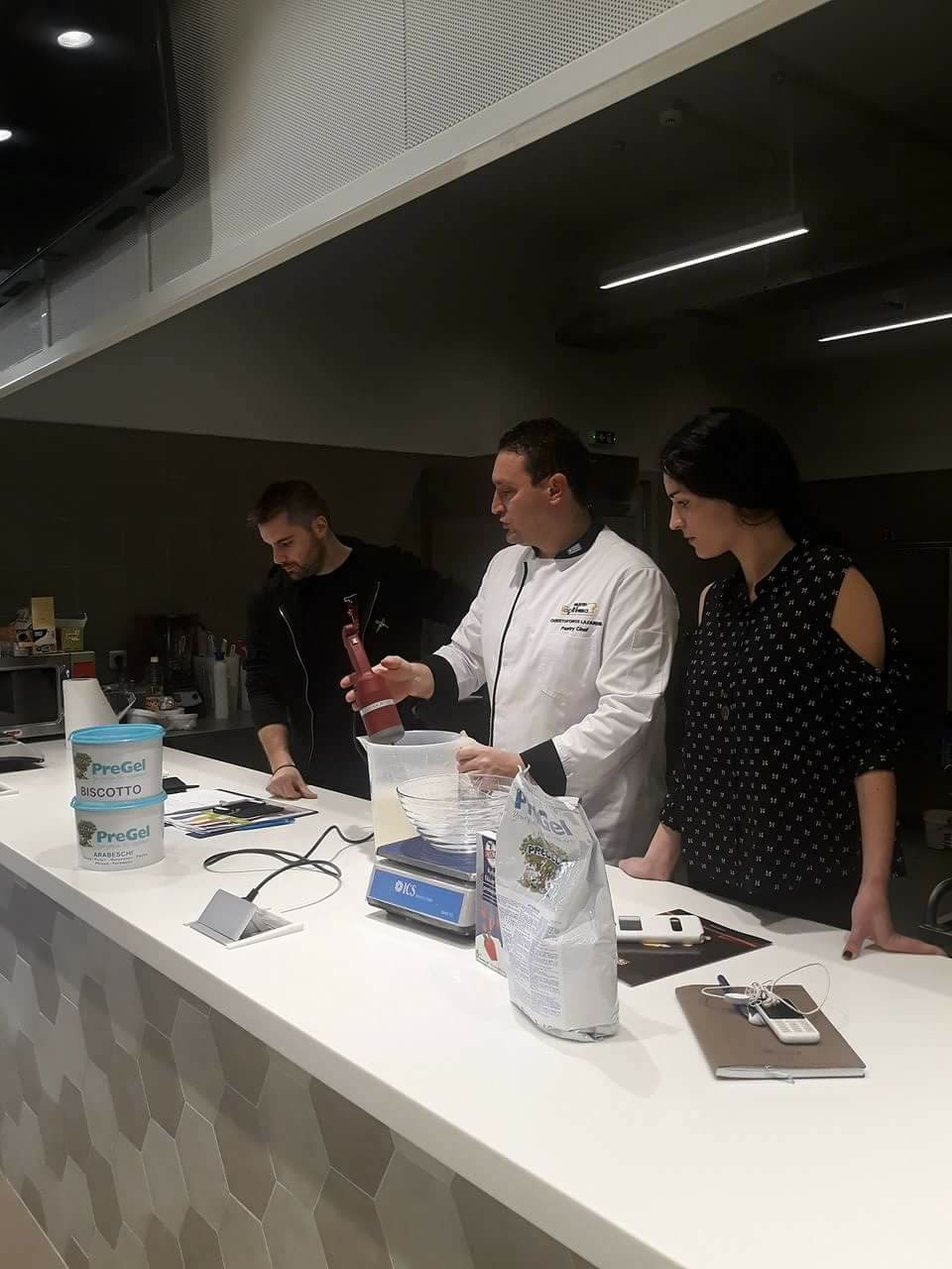 The presentation was under the observation of Mr Lazaridis Christoforos who answered every question and showed new techniques based on every new product that he used for each recipe. Recipies with ice cream from Pregel, chocolates Casa Lucker from every place of Colombia. Also weiss chocolates, sugars and sugar pastes from Laped and also more for the production of impressive but clear in taste, sweets, made of butter or margarine.