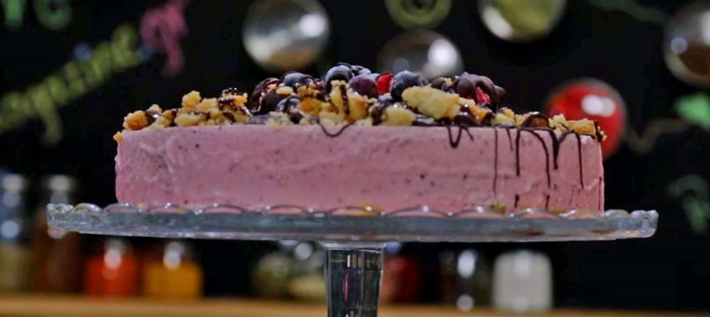 Τούρτα παγωτό με κόκκινα φρούτα και μπισκότο καρύδας